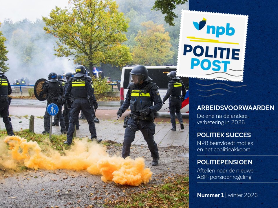 In deze editie: Arbeidsvoorwaarden De ene na de andere verbetering in 2026 politiek succes NPB beïnvloedt moties en het coalitieakkoord politiepensioen Aftellen naar de nieuwe ABP-pensioenregeling Nummer 1 | winter 2026